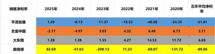 平潭发展、奥瑞德两家在畴昔五年净利率高潮。